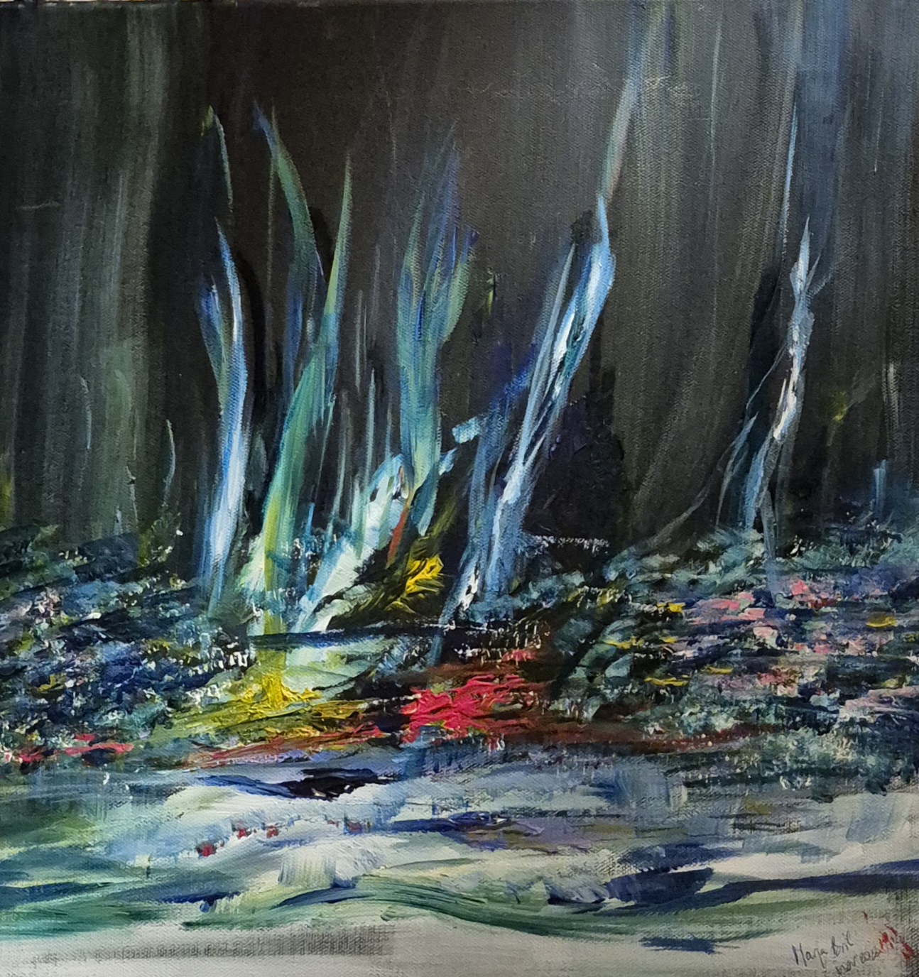 Look, Something Lights up Your World! Akryl på dypt svart lerret. 50x50 cm. Oktober 2025. 1750.- NOK.