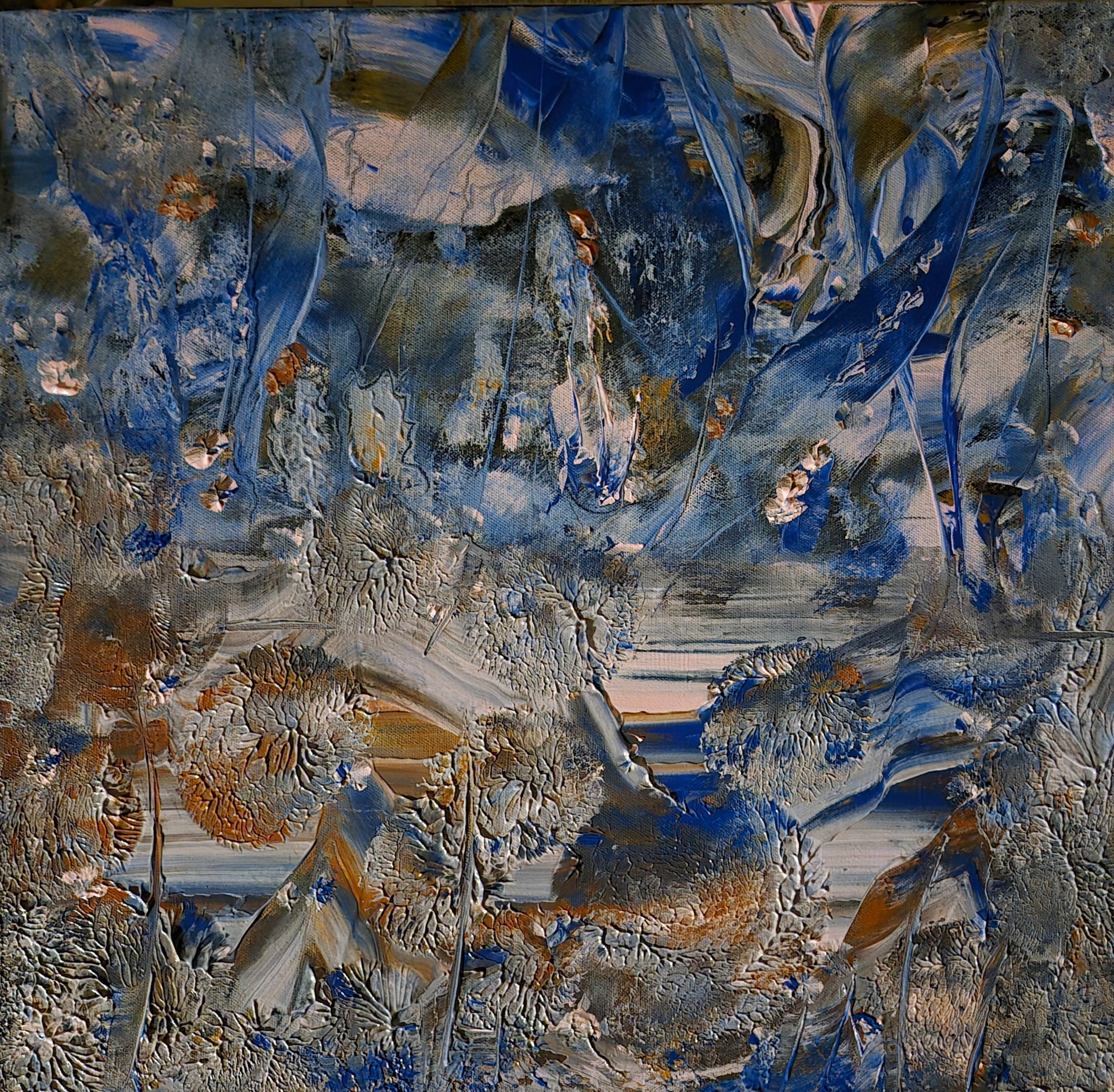Inner Landscape. Akryl på dypt svart lerret. 40x40 cm. 1500.- NOK
